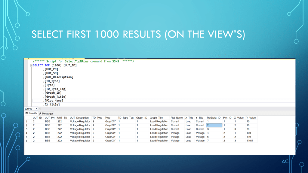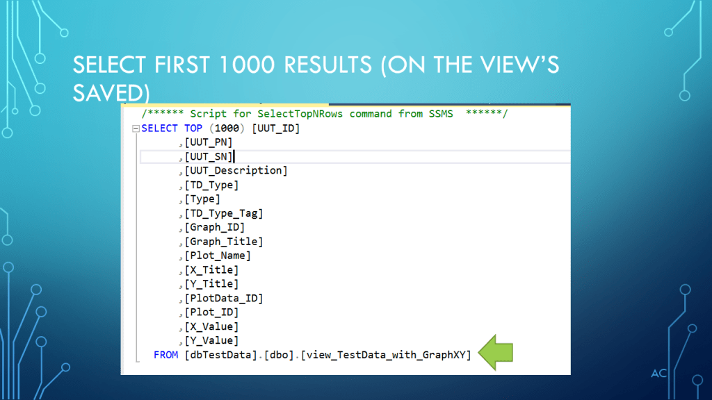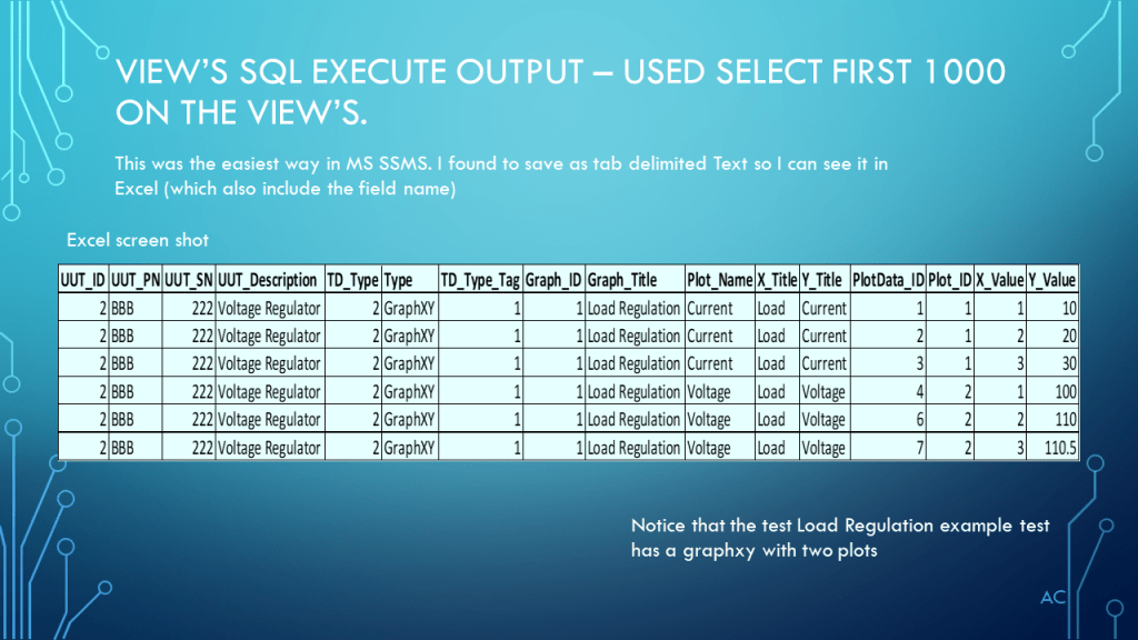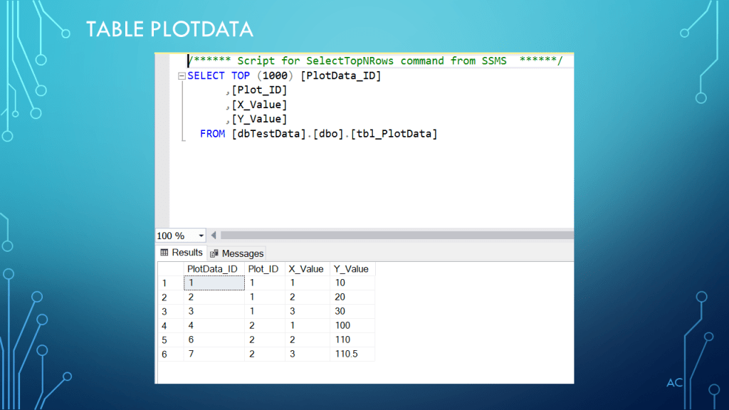 Extracting GraphXY type data from an example Testdata using MS Sql Server Management Studio