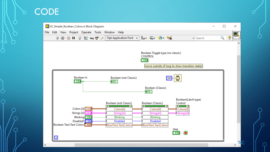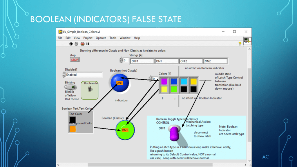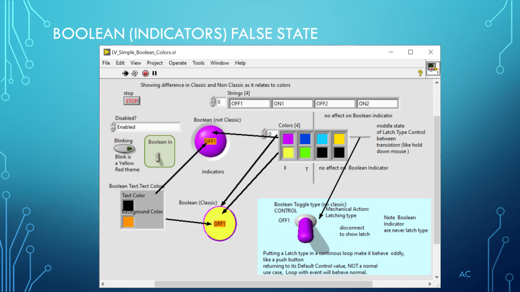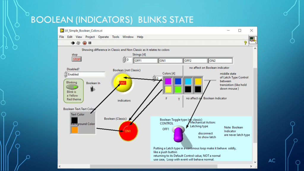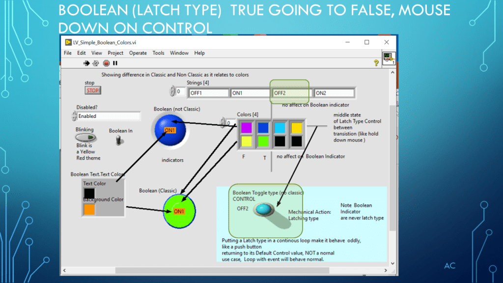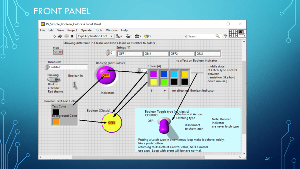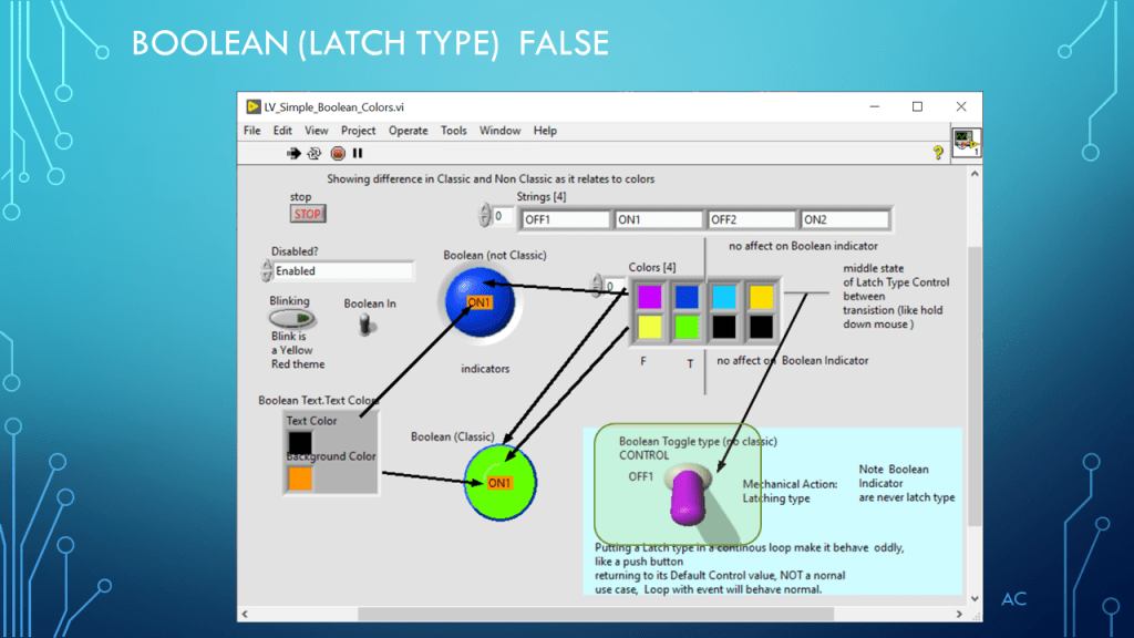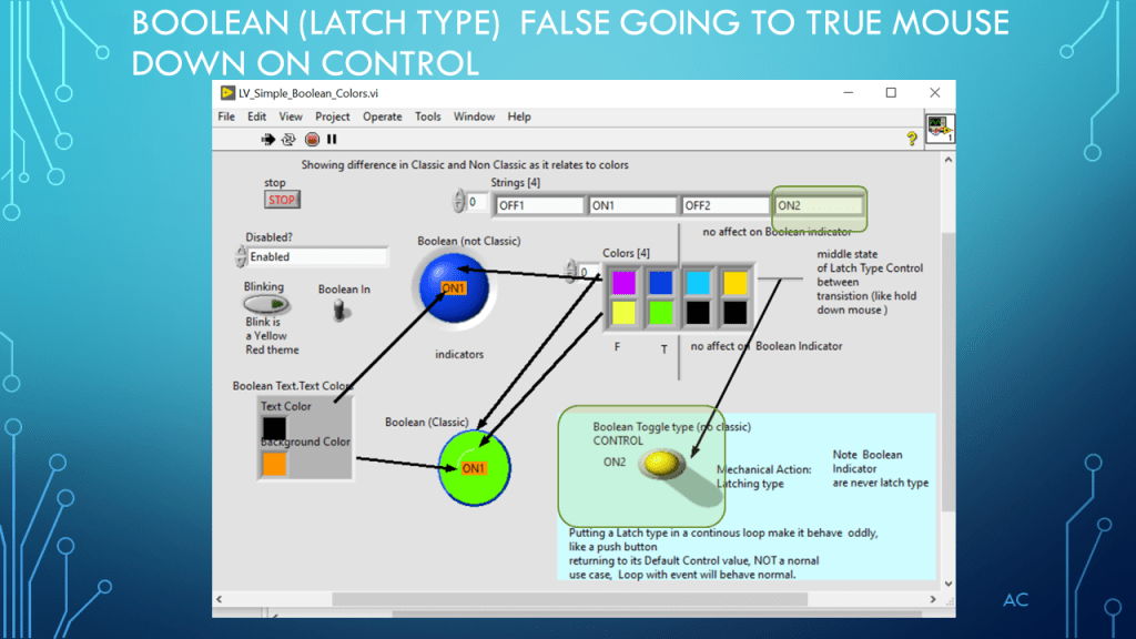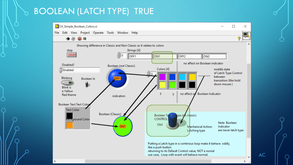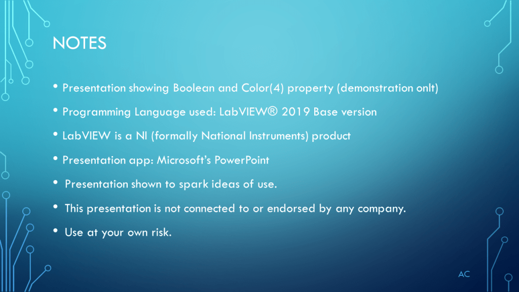 •Presentation showing Boolean and Color(4) property (demonstration only)