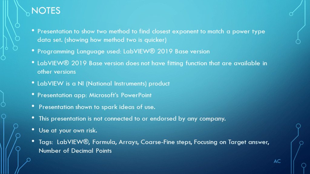 •Presentation to show two method to find closest exponent to match a power type data set. (showing how method two is quicker)