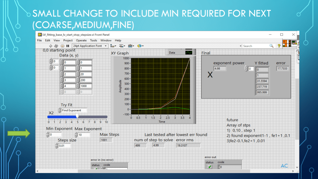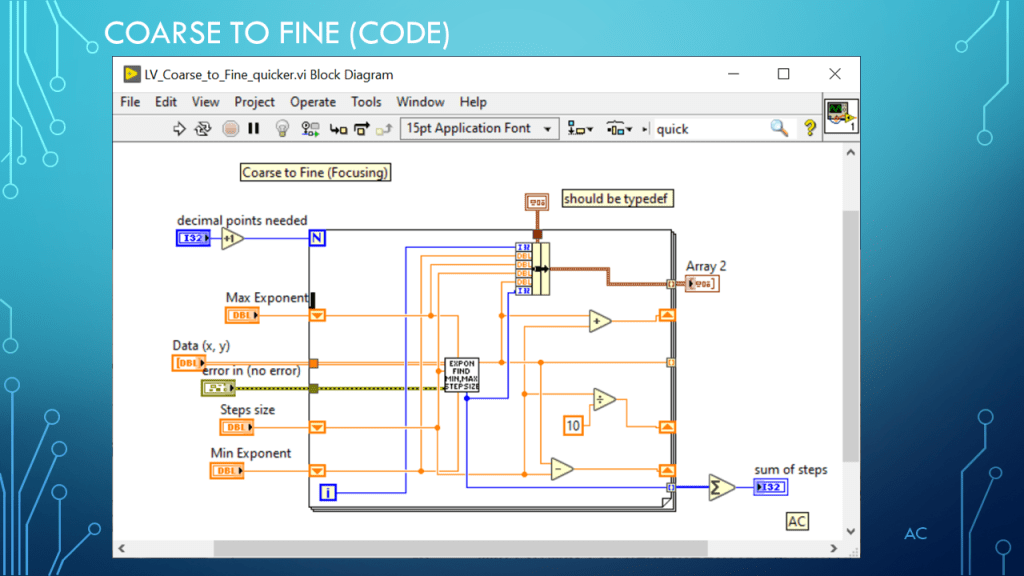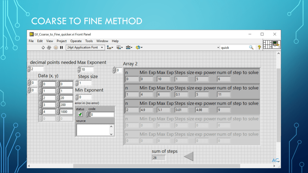 Tags: LabVIEW®, Formula, Arrays, Coarse-Fine steps, Focusing on Target answer, Number of Decimal Points