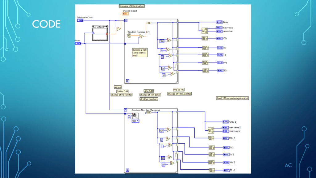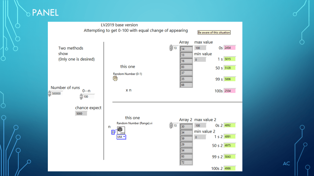 Two tools are used to create random number (0-100) but only one is what I wanted.