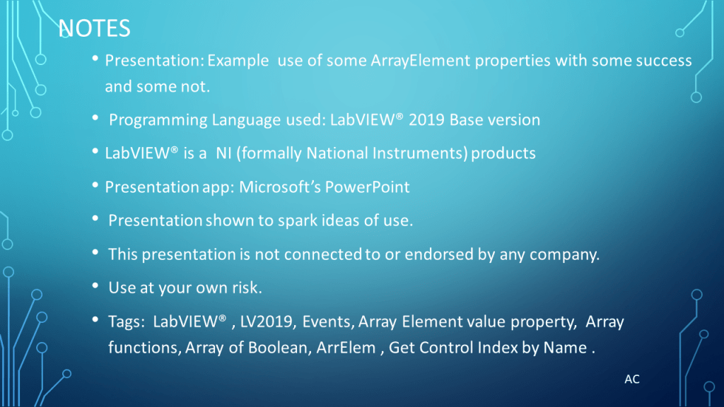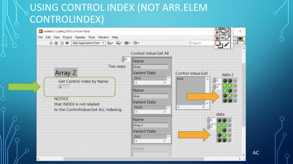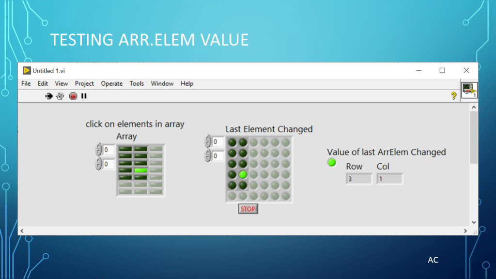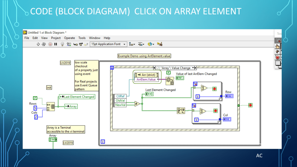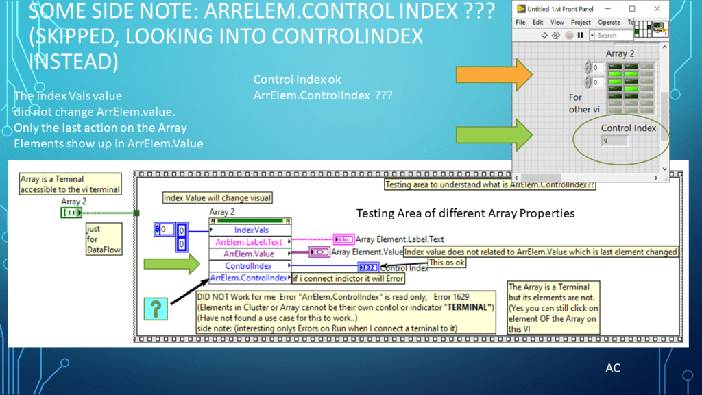 - Tags: LabVIEW® , LV2019, Events, Array Element value property, Array functions, Array of Boolean, ArrElem , Get Control Index by Name .