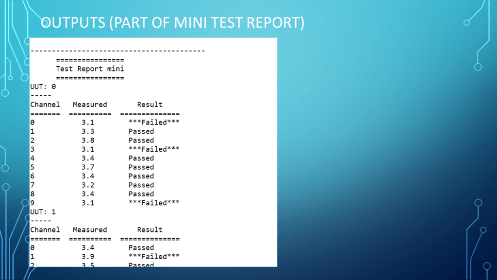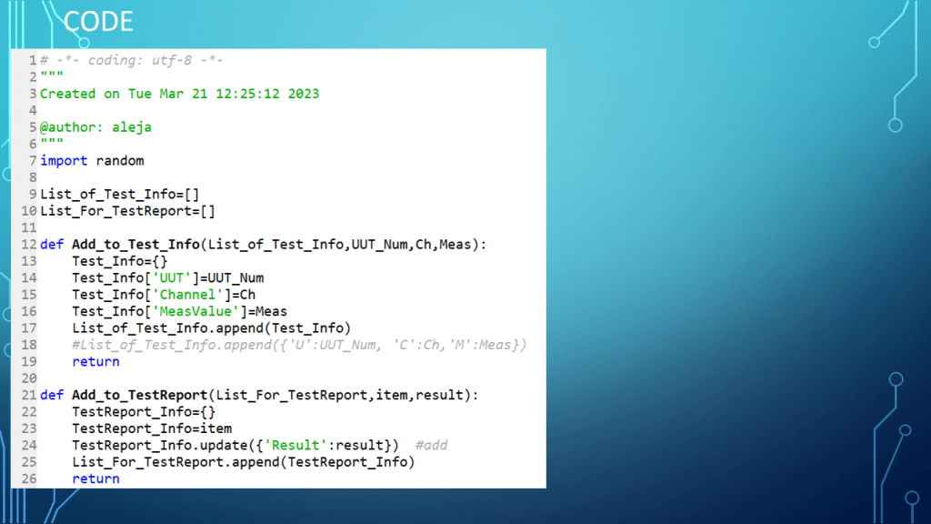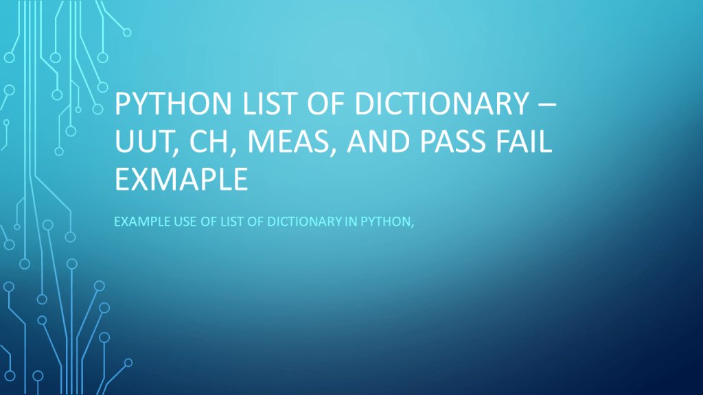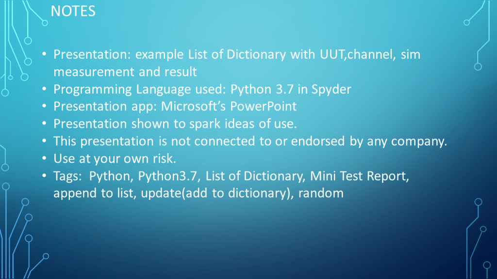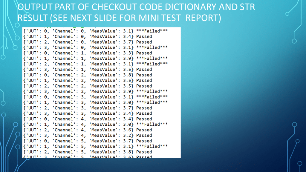 - Presentation: example List of Dictionary with UUT,channel, sim measurement and result