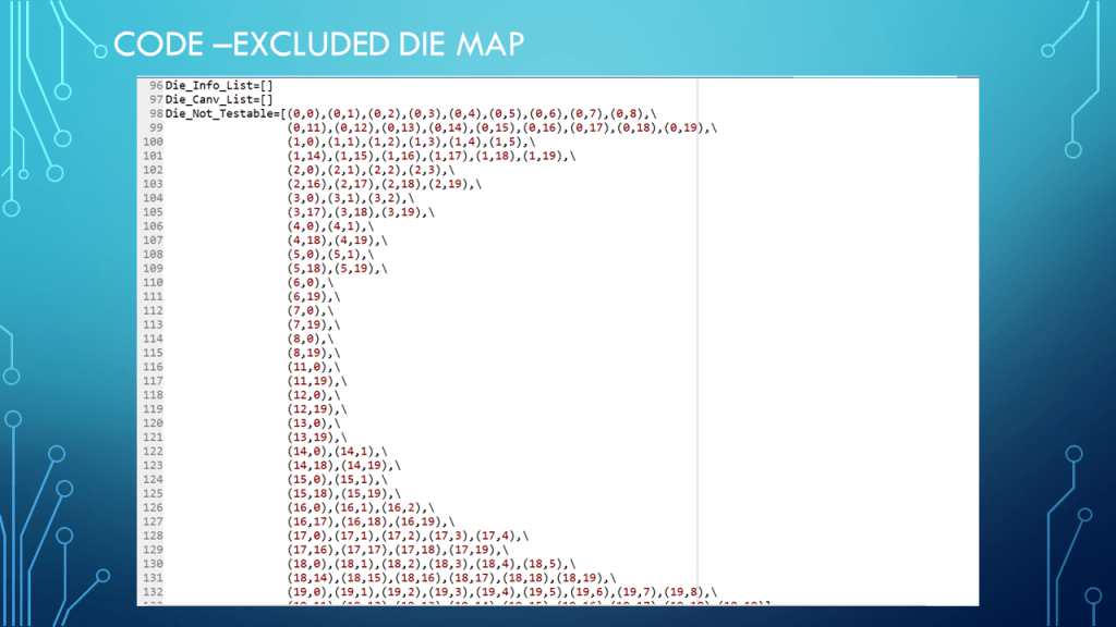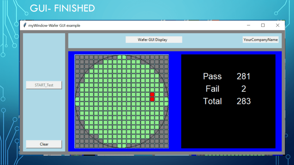 Presentation on a Wafer Die Testing GUI example with Die grid, and pass, fail, total info
